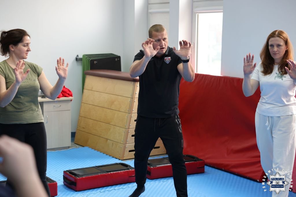 Nie tylko przedsiębiorczość, ale i samoobrona. 15 pań z Klubu Przedsiębiorczych Mam wzięło dziś (10 grudnia) udział w zajęciach z udziałem instruktorów i policyjnego psychologa.