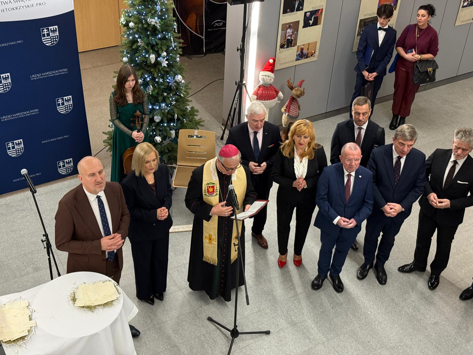 W wigilijnym spotkaniu wziął udział także biskup Jan Piotrowski, który zwrócił uwagę na symbolikę opłatka jako znaku chleba.