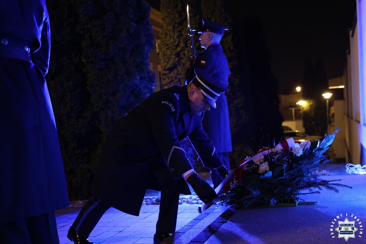 W uroczystości zorganizowanej pod tablicą upamiętniającą poległych policjantów udział wzięli udział między innymi, zastępca Komendanta Wojewódzkiego Policji w Kielcach insp. Jacek Cholewa, także prezes Świętokrzyskiego Stowarzyszenia „Rodzina Policyjna 1939” Grażyna Szkonter oraz przedstawiciele policyjnych związków zawodowych.