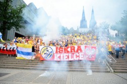 Atmosferę finałowego meczu Ligi Mistrzów piłkarzy ręcznych mieszkańcy Kolonii mogli poczuć w samo południe, kiedy na placu obok miejscowej katedry zgromadzili się kibice Vive i Veszprem. Fani obu drużyn głośno śpiewali czym podobno zagłuszyli przebieg mszy w gotyckiej świątyni. Sympatycy kieleckiego klubu wyruszyli później w rozśpiewanym korowodzie do Lanxess Areny. Poniżej nasza fotorelacja!