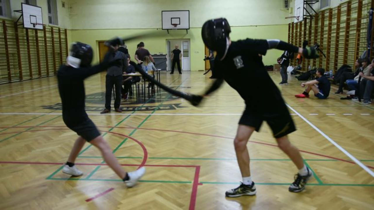 – Zajmujemy się szermierką historyczną, klasyczną. Nie sportową, nie biegamy z antenkami. Posługujemy się bronią, która może okazać się niebezpieczna – wyjaśnia Cezary Mieleniewski, który we wtorki, czwartki i niedziele prowadzi zajęcia fechtunku w hali Zespołu Szkół Mechanicznych.