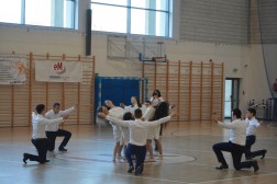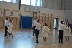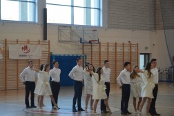 Zmagania sportowe piętnastu zespołów na hali UJK uświetnił pokaz taneczny uczniów z IV Liceum Ogólnokształcącego w Kielcach.
