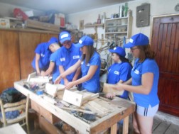 Pod opieką wspierających młodych ekologów wiedzą i doświadczeniem coucha i Pana Zbigniewa Fijewskiego - przedstawiciela Mazowiecko – Świętokrzyskiego Towarzystwa Ornitologicznego - w zaprzyjaźnionej stolarni przy pomocy różnych narzędzi młodzież montowała budki dla nietoperzy.