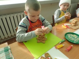 Oprócz choinek dzieci dekorowały również piernikowe ludziki. - Lubię takie zajęcia, bo mogę robić różne cukrowane rzeczy - mówił Jakub Szlufik.