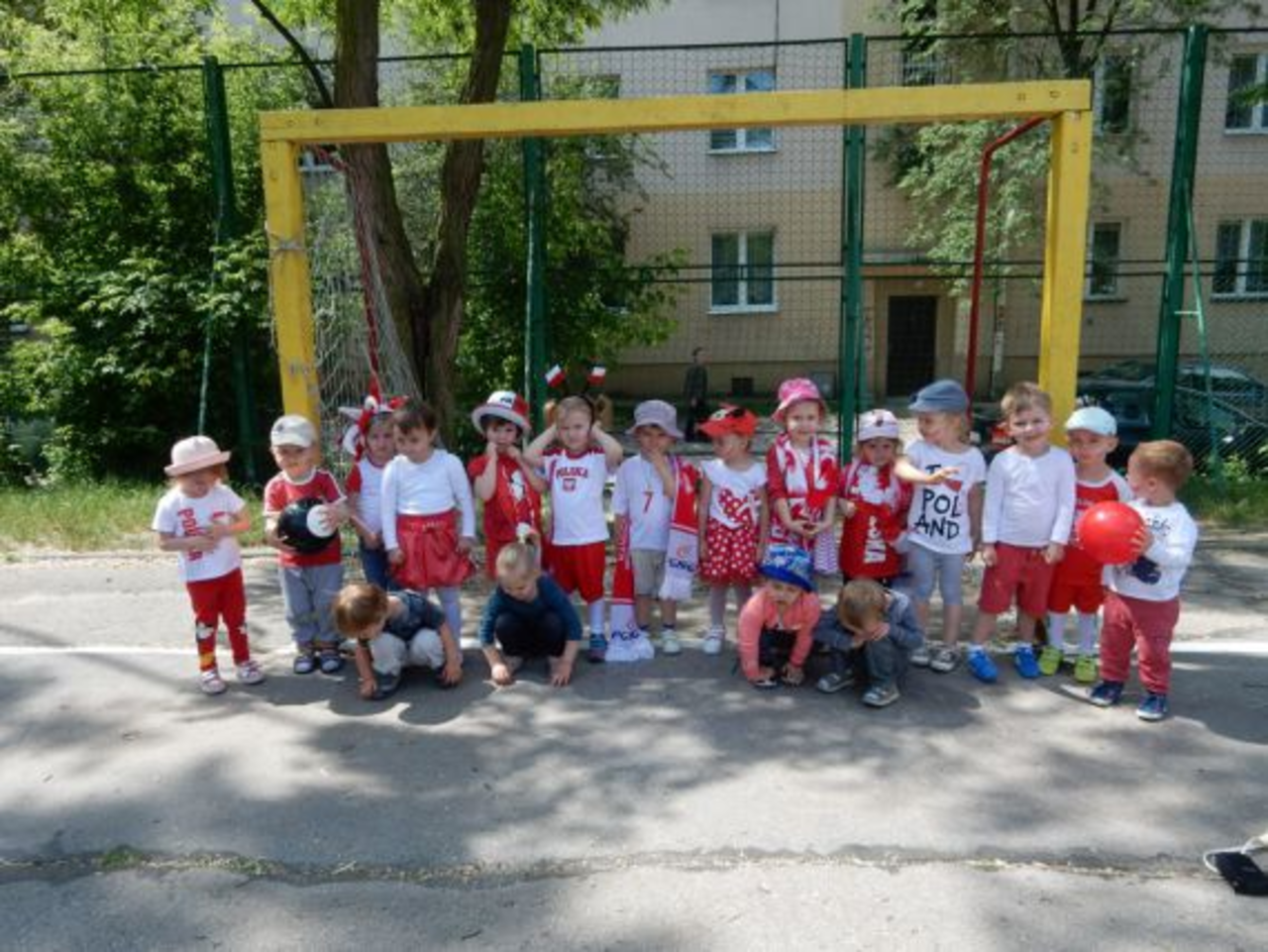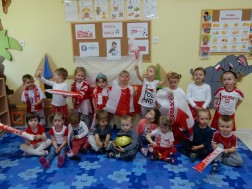 "Żyrafki starsze" - 3 latki z Niepublicznego Przedszkola Artystyczno-Językowego "Nasza Babcia" w Kielcach razem ze swoimi opiekunkami postanowiły kibicować i wspierać polską drużynę na Mistrzostwach Europy we Francji EURO 2016. Brawo!