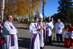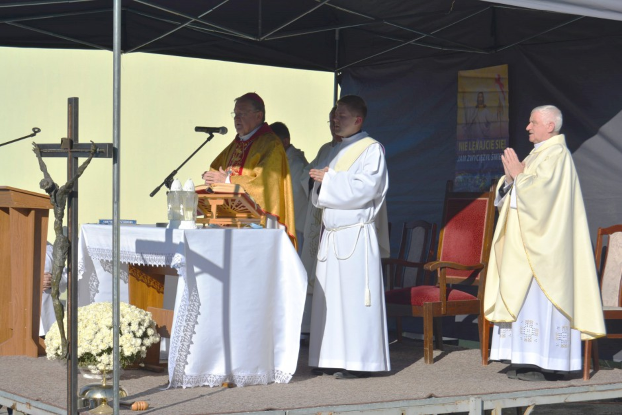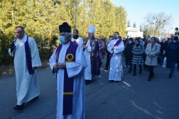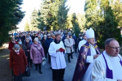 Podczas procesji wokół cmentarza, wierni wraz z biskupem modlili się za spoczywających na nim zmarłych. Po dojściu asysty do cmentarnego ołtarza rozpoczęła się Eucharystia.