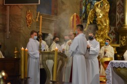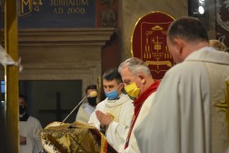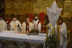 – Jezus wciąż żyje, a Jego ofiara jest darem dla ludzi wszystkich czasów. Jest w nich obecny. Zauważmy, że od dwóch tysięcy lat, jakie mijają od ustanowienia Eucharystii, niezliczone rzesze wiernych na całym świecie usposobione łaską wiary, otrzymaną na Chrzcie Świętym, przyjmują Jezusa Chrystusa w Komunii Świętej pod postaciami chleba i wina. Również dziś, na podobieństwo pierwszej wspólnoty chrześcijańskiej – jako żywy Kościół, Kościół kielecki, trwamy w nauce apostołów i we wspólnocie, w łamaniu chleba i modlitwie – tłumaczył biskup Jan Piotrowski i dodał, że prześladowanie wiary i jej wyznawców nie jest czymś nowym.