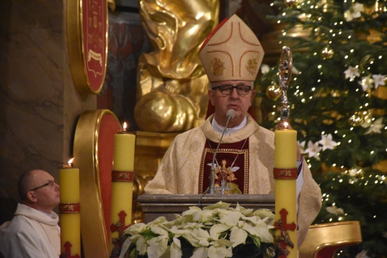 – Dziś, drodzy bracia i siostry, wszyscy zgromadzeni w naszej bazylice katedralnej, przeżywając uroczystość Bożego Narodzenia i będąc uczestnikami Mszy Świętej pasterskiej, pytajmy siebie po czyjej stajemy stronie: niegościnnych ludzi z Betlejem czy skromnych pasterzy. Co jest milsze mojemu sercu? Prawda o życiu, które zawsze jest darem Bożym, czy raczej wolę spacerować po cywilizacyjnych cmentarzach duchowej śmierci, pogardy dla życia i ludzkiej natury, obłudy i braku odwagi, aby się nie narazić nikomu? Dlatego też Betlejem z narodzinami Jezusa Chrystusa to historia paradoksów. Jedni podążają tam ochotnie, inni zatrzymują się w połowie drogi, a dziś są i tacy jak Herod pełni niewiary i rządzy władzy, aby za cenę łez i krzyku matek wytępić pokolenie wierzących w Jezusa Chrystusa. Moi drodzy, kto jest blisko Jezusa, ten zawsze wybiera prawdy, miłości, nadziei, życia oraz autentycznej wolności.
