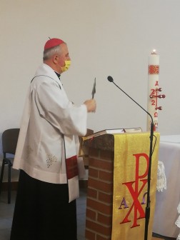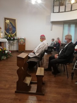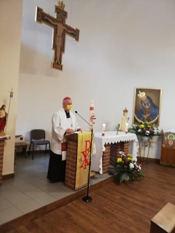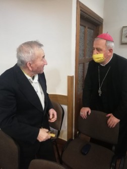 W kaplicy Domu dla Niepełnosprawnych biskupi odmówił Koronkę do Bożego Miłosierdzia razem z mieszkańcami, zawierzając chorych i cierpiących Panu Bogu i wspierając ich swoim słowem. Zapewnił również o codziennej modlitwie w trakcie pandemii i udzielił błogosławieństwa relikwiami św. Faustyny.
