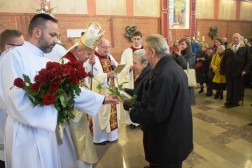 W Eucharystii uczestniczyli małżonkowie-jubilaci, którzy świętują okrągłe rocznice ślubu. Przywitał ich proboszcz parafii, ksiądz Jan Iłczyk.