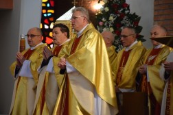 – Z wielką radością przystępuję do Ołtarza Pańskiego w tej pięknej świątyni, która jest owocem pracy rąk ludzkich oraz wyrazem miłości i nadziei tej parafii i tego ludu. Obejmujemy budowniczych tego kościoła modlitwą. Cieszę się, że mogę tu ponownie być i wyrazić swoją radość oraz dziękczynienie – tłumaczył były prymas Polski.