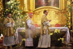 Na początku Eucharystii celebrans poświęcił kadzidło, kredę do oznaczania drzwi domów wiernych oraz wodę, którą pokropił zebranych. W wygłoszonej homilii mówił o tęsknocie serca