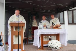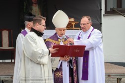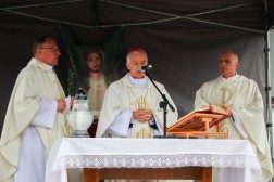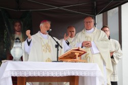 Wraz z biskupem modlili się także: ks. Dariusz Sieradzy, proboszcz parafii w Domaszowicach, ks. Mirosław Cisowski, proboszcz parafii św. Wojciecha w Kielcach oraz ks. Grzegorz Jędrzejczyk, asystent biskupa Mariana Florczyka.