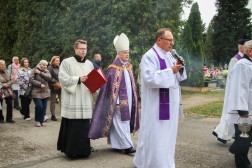 Przed południem wyruszyła procesja po cmentarzu, w trakcie której obecni wierni modlili się różańcem w intencji zmarłych. Następnie na ołtarzu polowym odbyła się Eucharystia pod przewodnictwem biskupa Mariana Florczyka, który w homilii podkreślił, że ludzkie życie jest kruche, a tylko Bóg jest trwały i wieczny.
