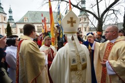 Pod koniec Mszy świętej biskup poświęcił kredę do oznaczania drzwi domów, kadzidło oraz wodę.