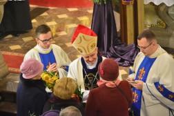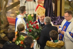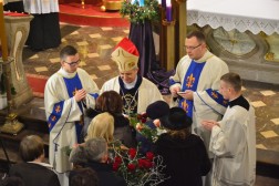 Po Mszy świętej przedstawiciele kapłanów, sióstr zakonnych oraz wszystkich wiernych wręczyli księdzu biskupowi kwiaty i złożyli życzenia.