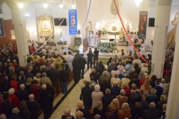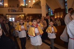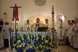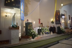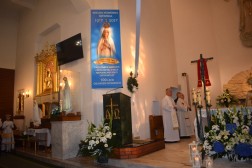 Punktem kulminacyjnym uroczystości była Msza św. pod przewodnictwem ks. biskupa Jana Piotrowskiego. Podczas homilii biskup mówił o znaczeniu objawień oraz o ich przesłaniu. - Fatima to portugalskie miasteczko, które jest oddalone od Kielc o 3238 kilometrów, ale jest nam bardzo bliskie z tej racji, że Maryja, Matka Jezusa jest matką całego Kościoła. Nasza wspólnota wiary uznaje i przypomina objawienia fatimskie jakie miały miejsce sto lat temu po to, abyśmy z Matką Najświętszą z pokorą umieli się pochylić nad Jezusem i darem Jego odkupieńczej miłości – powiedział biskup. Przypomniał jednocześnie, że z przesłania objawień fatimskich wypływa przede wszystkim prośba Maryi – nawracajcie się, czyńcie pokutę, odmawiajcie różaniec. - Jest to prośba o głębię życia duchowego, o medytację, o cześć dla Matki Jezusa oddawaną w pierwsze soboty miesiąca i powierzenie się Jej Niepokalanemu Sercu. Objawienia fatimskie nie nakładają żadnych ciężarów, ale aktualizują to, czego oczekuje od nas Pan Jezus: „po tym wszyscy poznają, żeście uczniami moimi, jeśli będziecie się wzajemnie miłowali” – podkreślał biskup. - Dzisiejszego świata nie psują maszyny i zdobycze techniki, ale zły człowiek, który jest siewcą intryg i zamętu (…) Czego nauczyła się Europa i Polacy po II Wojnie Światowej, po Ugandzie, Kambodży czy Syrii? Niewiele. To jest nauka dla każdego z nas, aby się przemienić i usłyszeć glos Maryi. Bracia i siostry! Należy pamiętać, że Fatima sama w sobie nie jest zbawieniem, a Jej orędzie nie zastępuje doskonałości objawienia, które Bóg nam ofiaruje w Chrystusie i które zostało przekazane przez proroków i apostołów. Należy jednak pamiętać, że znajomość objawień fatimskich jest ratunkiem, bowiem pozwala odnaleźć drogę, aby na nowo zbliżyć się do Boga, który jest Miłością i przyjąć ten zbawienny dar – dodał hierarcha.
