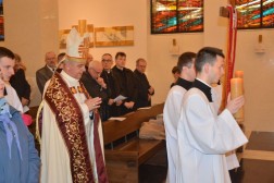 Uroczystości rozpoczęły się nieszporami odprawionymi przez ks. biskupa w Kościele pw. Św. Jana Pawła II. W słowach skierowanych do wiernych ordynariusz kielecki podkreślał, że podstawą duszpasterstwa akademickiego jest Słowo Boże. - Nie ma ono innego funadamentu, niż Chrzest Święty i łaska wiary. Nie ma też innego odżywczego źródła, aby trwać w Chrysusie i z Chrystusem we wspólnocie kościoła. Tym źródłem jest niezmiennie Słowo Boże i Eucharystia - mówił.