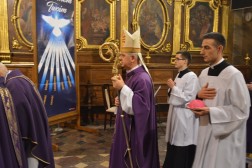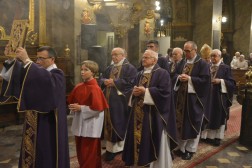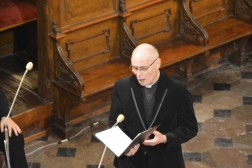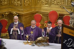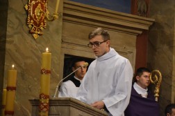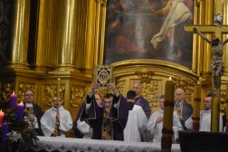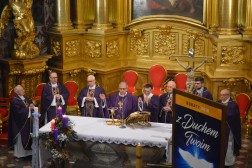 Eucharystii przewodniczył biskup Jan Piotrowski, biskup kielecki. W swojej homilii pasterz naszej diecezji nawiązał do okresu liturgicznego, który przeżywamy. – Adwent jaki przeżywamy zatrzymuje nas poniekąd na doczesności, albowiem oczekujemy Świąt Bożego Narodzenia. Czynimy różne przygotowania natury gospodarczej i domowej, ale tym samym oczekujemy przyjścia Jezusa Chrystusa, bowiem już z narodzinami otwiera się nowa perspektywa życia i niebywałych obietnic, które Bóg daje człowiekowi – mówił biskup kielecki. – Chrześcijanin jest człowiekiem nadziei, dlatego ufamy, modlimy się szczerze i polecamy duszę ŚP. Jerzego Rosińskiego Bożemu miłosierdziu. Adwent, który jest czasem oczekiwania Pan wspaniałomyślnie zamienia w czas nadziei. Doświadczenie zaś pokazuje nam, że życie spędzamy w ciągłym oczekiwaniu. Kiedy byliśmy dziećmi chcielibyśmy postępować jak dorośli. W młodości dążymy do wielkiej miłości, która nas wypełni. Kiedy jesteśmy dorośli pragniemy realizacji naszych planów i zamierzeń w sferze życia rodzinnego, małżeńskiego, zawodowego, czy społecznego. Kiedy przychodzi zaawansowany wiek dążymy do zasłużonego odpoczynku. Kiedy te nadzieje się spełnią, albo kiedy doznajemy porażki dostrzegamy, że w rzeczywistości to nie było najważniejsze. Potrzebujemy nadziei, która wyprowadzi nas poza obszar naszych marzeń i oczekiwań – dodał.