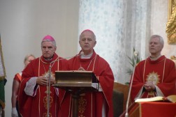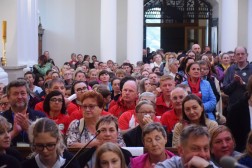 Około godziny 14 wszyscy spotkali się w Sanktuarium na Świętym Krzyżu. Tam wręczono odznaki dla najwytrwalszych pielgrzymów. O 15 rozpoczęła się uroczysta Msza Święta, koncelebrowana przez biskupów: sandomierskiego Krzysztofa Nitkiewicza, kieleckiego Jana Piotrowskiego, ojców Oblatów ze Świętego Krzyża oraz kapłanów, którzy pielgrzymowali razem ze swoimi grupami.