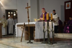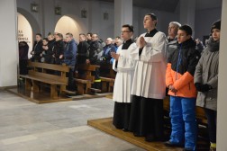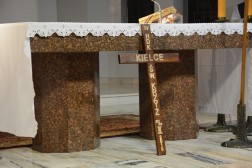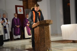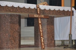 - Bracia i Siostry! Zacni Pielgrzymi na Święty Krzyż! Mury tej gościnnej dąbrowskiej świątyni, której patronuje Najświętsza Maria Panna Matka Kościoła otwarły szeroko swoje podwoje, aby po raz czwarty przyjąć uczestników Nocnej Drogi Krzyżowej z Kielc na Święty Krzyż - mówił podczas homilii ks. biskup Jan Piotrowski. - Tym razem zarząd Katolickiego Stowarzyszenia Młodzieży Diecezji Kieleckiej zaprasza na pasyjny, wielkopostny szlak, aby go przeżyć pod hasłem słów zaczerpniętych z pieśni "Krzyżu Święty nade wszystko" - kontynuował hierarcha.
