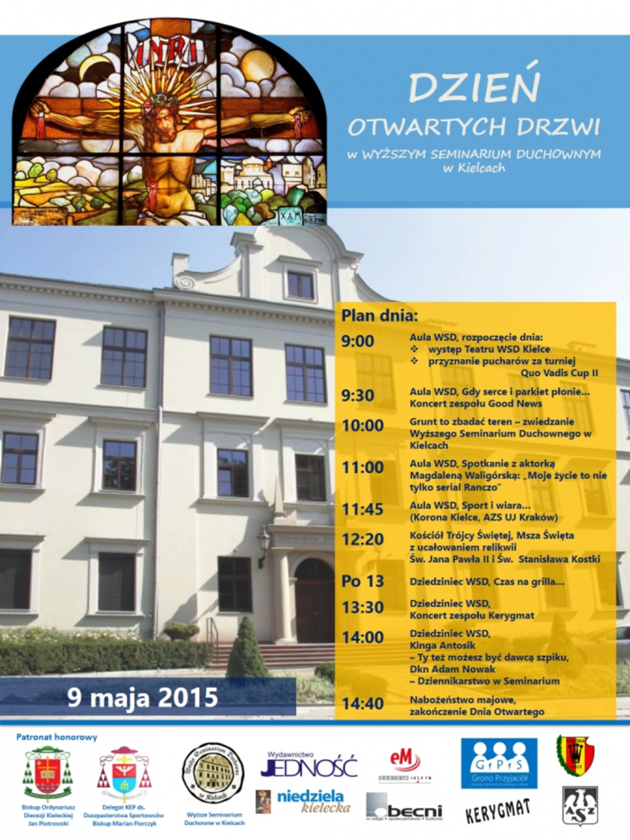 Msza św., modlitwy powołaniowe, koncert zespołu „Kerygmat”, adoracja Najświętszego Sakramentu, oraz wprowadzenie i uczczenie relikwii polskich świętych i błogosławionych – tego wszystkiego będą mogli doświadczyć Ci, którzy 9 maja odwiedzą Wyższe Seminarium Duchowne w Kielcach.