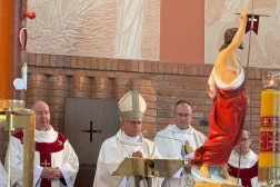 Mszę Świętą w kościele św. Józefa Robotnika w Kielcach poprzedziło złożenie kwiatów przed tablicą upamiętniającą powstanie „Solidarności” na skwerze im. Stefana Żeromskiego.