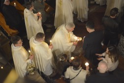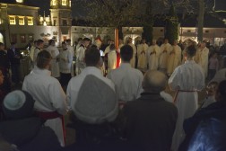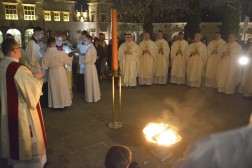 Uroczystą Wigilię Paschalną w kieleckiej katedrze po zmroku rozpoczęła Liturgia Światła. Przed głównym wejściem do bazyliki, biskup Jan Piotrowski poświęcił ogień, od którego zapalono paschał. Został on wniesiony do świątyni oznajmiając Zmartwychwstanie Chrystusa. Następnie wierni wysłuchali Orędzia Wielkanocnego. Usłyszeli także czytania ze Starego i Nowego Testamentu. W trakcie Liturgii Słowa po przerwie znowu rozbrzmiały organy, a wierni zaśpiewali uroczyste „Chwała na wysokości Bogu”.