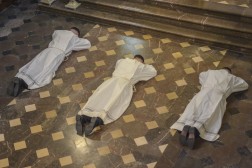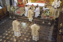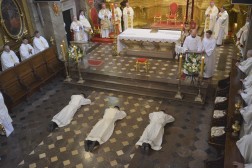 W trakcie liturgii odśpiewano Litanię do Wszystkich Świętych, podczas której kandydaci położyli się krzyżem, na znak głębokiej modlitwy. Następnie biskup włożył na nich ręce przekazując im moc Ducha Świętego. Diakoni nałożyli właściwą dla nich szatę liturgiczną – dalmatykę, a także otrzymali księgę Ewangelii oraz uścisk pokoju od biskupa Piotrowskiego.