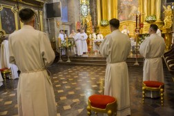 Diakonami zostali alumni V roku: Paweł Cieplewicz z parafii św. Bartłomieja w Szczekocinach, Mikołaj Marzęcki z parafii św. Wojciecha w Kościelcu oraz Mateusz Smolarczyk z parafii Podwyższenia Krzyża Świętego w Łopusznie.