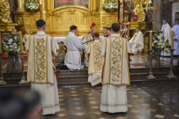 – Chciałbym przypomnieć nauczenie Soboru Watykańskiego II, które przypomina, że diakon pełni funkcję współpracownika biskupa. Są nimi ci, których Chrystus wybrał do służenia wszystkim. Dlatego też Bóg, Odwieczna Miłość, obdarza was wszelkimi potrzebnymi darami i chce, abyście w Kościele korzystali z charyzmatów. Z kolei normą waszego życia ma być zachęta, jaką znajdujemy w Liście św. Pawła do Efezjan, abyście zawsze i wszędzie postępowali w sposób godny powołania, do jakiego zostaliście wezwani. W tej posłudze niech towarzyszy wam łaska dojrzałem wiary – powiedział Biskup Kielecki Jan Piotrowski.