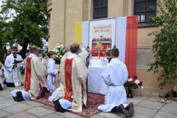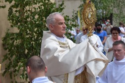 W trakcie Eucharystii homilię wygłosił biskup pomocniczy diecezji kieleckiej Marian Florczyk. – Wbrew wszystkiemu, tegoroczną Uroczystość Najświętszego Ciała i Krwi Chrystusa przeżywamy bardziej aniżeli w poprzednie lata. Od początku panującej pandemii zostały wprowadzone ograniczenia dotyczące życia, a więc i wiary. Wraz z koronawirusem to co było do tej pory tak proste i dostępne zaczęło się komplikować. Pojawiło się wiele propozycji, które niełatwo było przyjąć. Wielu wyrażało gorące pragnienie przyjęcia Jezusa Chrystusa pod postacią chleba. Nie zadawalała ich komunia duchowa. Swój głód duchowy pragnęli zaspokoić prawdziwym Chlebem Życia – mówił biskup Marian Florczyk.