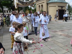 Po Mszy Świętej odbyło się wystawienie Najświętszego Sakramentu, a wierni przeszli w procesji do czterech ołtarzy ustawionych wokół bazyliki katedralnej.