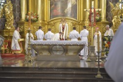Eucharystię, wraz z Biskupem Kieleckim Janem Piotrowskim koncelebrowali m. in. biskupi pomocniczy Marian Florczyk i Andrzej Kaleta, księża profesorowie seminarium oraz kapłani z parafii, z których pochodzą nowowyświęceni.