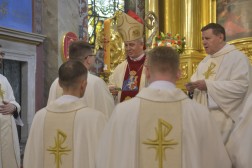 – Moi drodzy, dziś w naszej wspólnocie wiary, Najwyższy Kapłan i Boski Nauczyciel kieruje do naszych diakonów słowa z Ewangelii św. Jana, które skierował niegdyś do swoich uczniów: „Już was nie nazywam sługami, bo sługa nie wie, co czyni Pan jego, ale nazwałem was przyjaciółmi, bo oznajmiłem wam wszystko, co usłyszałem od Mego Ojca” – powiedział biskup Jan Piotrowski.