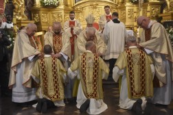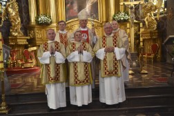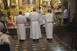 – Zgromadzeni dziś na Mszy Świętej jesteśmy świadkami wydarzenia, które nigdy wcześniej nie miało miejsca w murach tej dostojnej świątyni, która powstała w 1171 roku. Zapraszam wszystkich do modlitwy w intencji trzech mężczyzn – mężów i ojców – którzy stają się diakonami stałymi – mówił bp Jan Piotrowski, ordynariusz diecezji kieleckiej.