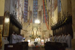 Czterdziestą, jubileuszową pielgrzymkę rozpoczęła tradycyjnie Msza Święta w bazylice kolegiackiej Najświętszej Maryi Panny w Wiślicy. Odprawił ją biskup Jan Piotrowski, który wygłosił również homilię.