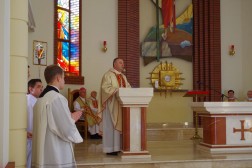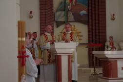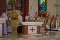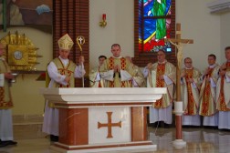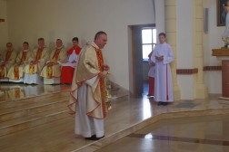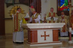Biskup Jan Piotrowski poświęcił i namaścił krzyżmem nowy ołtarz, po czym dokonał jego okadzenia, a następnie, w celu dopełnienia konsekrancji, zapalone zostało światło Chrystusa. W swojej homilii skierowanej do zgromadzonych wiernych ksiądz biskup podkreślał wagę dzisiejszego dnia, a także znaczenie Chrystusa Odkupiciela.