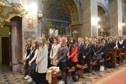 Podczas Mszy Świętej uczniowie pierwszych klas złożyli uroczyste ślubowanie. Wręczono także nagrody za najwyższe średnie ocen w minionym roku szkolnym. – Wielką mądrością założycieli szkoły było to, aby nadać jej imię św. Stanisława Kostki, który jest wzorem dla młodzieży i dzieci. Dzięki tej decyzji podjętej bardzo dawno temu staramy się widzieć w naszym patronie przykład dla uczniów. Jego hasło „Do wyższych rzeczy zostałem stworzony” może przyświecać całej polskiej młodzieży – tłumaczy ks. Jacek Kopeć, dyrektor ZSKDK.