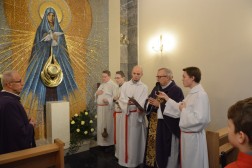 Mozaika przedstawiająca Matkę Bożą niosącą Ducha Świętego, w centrum Najświętszy Sakrament, a obok relikwie świętych – tak wygląda kaplica boczna w parafii Ducha Świętego, dedykowana Najświętszej Maryi Pannie. Jej poświęcenia dokonał dziś ks. Dariusz Gącik w obecności kapłanów i wiernych z parafii Na Stoku. Wikariusz generalny diecezji kieleckiej odprawił również uroczystą Mszę Świętą i wygłosił homilię, w której prowadził rozważania nad istotą Adwentu.