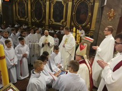 Dwustu jedenastu ministrantów z różnych stron diecezji kieleckiej zostało dzisiaj w kieleckiej bazylice katedralnej powołanych do posługi lektorskiej. Uroczystej Mszy Świętej przewodniczył ksiądz biskup Andrzej Kaleta, który udzielił błogosławieństwa lektorom.