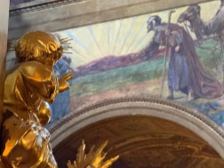 – Na malowidle w kieleckiej katedrze Rebeka została przedstawiona przy studni, po lewej stronie kompozycji. Na drugim planie stoi inna kobieta z dzbanami na ramionach. Po przeciwnej stronie, w geście powitania, ukazano Eliezera, który – wraz z pomocnikiem i tylko jednym wielbłądem – dopiero co dotarł do studni. W centrum kompozycji widać promienie zachodzącego za horyzontem słońca. Nie jest to bardzo szczegółowa ilustracja tekstu biblijnego, jednak taka kompozycja wprowadza dynamizm do całej sceny i – zgodnie z egzegezą chrześcijańską – pozwala w postaci Eliezera widzieć typ archanioła Gabriela, który w przyszłości przyjdzie do Maryi w chwili Zwiastowania – wyjaśnia ks. Tkaczyk.
