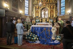 To właśnie tam najpierw zgromadzili się wierni, którzy przed Najświętszym Sakramentem odmówili różaniec. Następnie Biskup Kielecki poświęcił wyremontowane mury.