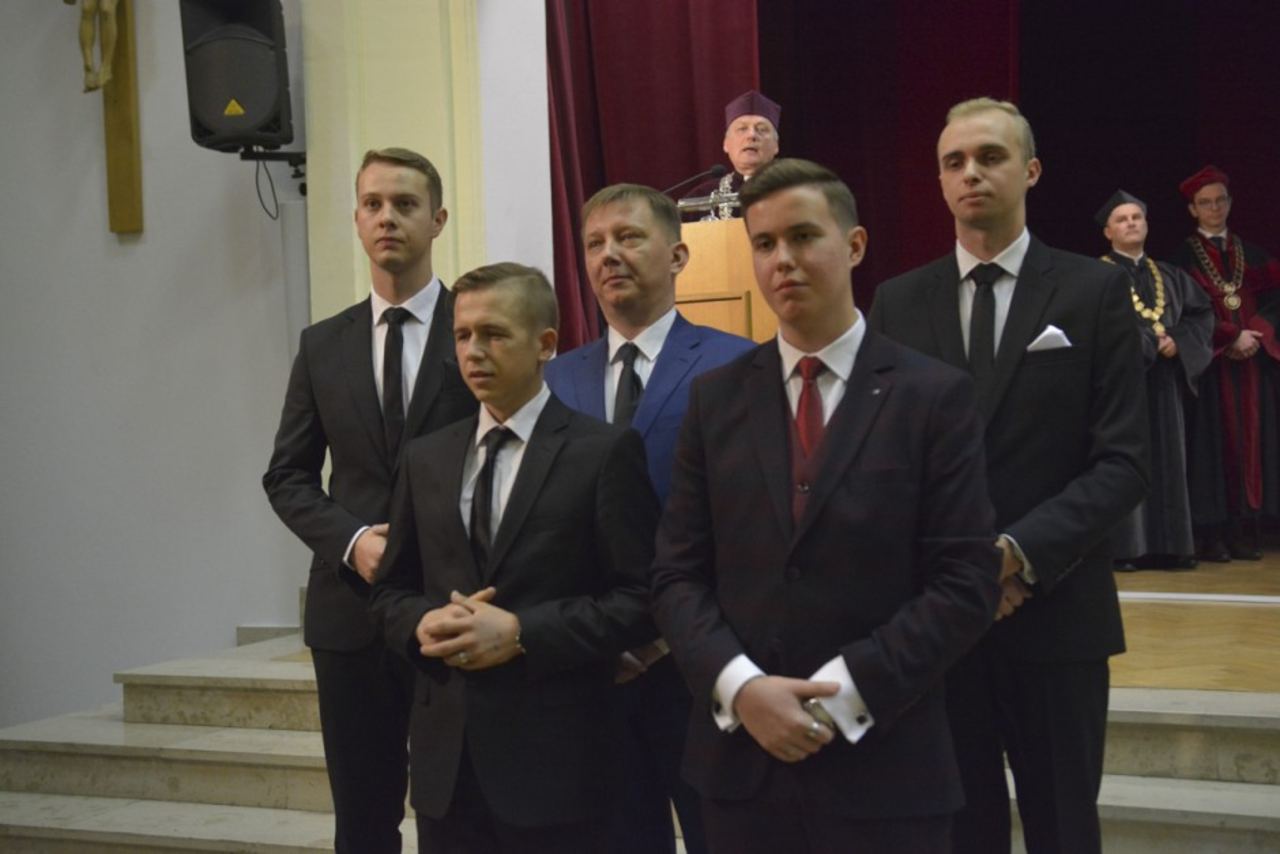 Następnie uroczystości odbywały się w auli seminaryjnej. Rozpoczęło je „Gaude Mater Polonia” w wykonaniu chóru seminaryjnego pod dyrekcją księdza Michała Olejarczyka. Następnie gości przywitał ks. Adam Perz, rektor seminarium.