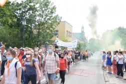 W tym roku, ze względu na pandemię, nie wszyscy pątnicy mogli doświadczyć wyjątkowego powitania w Kielcach. Ola z grupy biało-niebieskiej przyszła do katedry, aby powitać pielgrzymów. – Cieszymy się, że tu jesteśmy i miło popatrzeć jak nasi siostry i bracia wchodzą do Kielc – przyznaje. – Jest trochę przykro, że nie możemy przejść całej trasy, ale staramy się dojeżdżać na Msze Święte – dodaje Martyna.