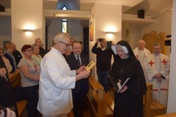 Prof. Stanisław Góźdź, dyrektor ŚCO, podkreślił, że kaplica to miejsce, w którym każdy chory znajduje wytchnienie w cierpieniu. – Człowiek słysząc rozpoznanie choroby nowotworowej, słyszy wyrok śmierci, jest to informacja dewastująca pacjenta. Świat się kończy, a marzenia i plany znikają. Na szczęście nasi pacjenci żyją coraz dłużej, a choroby nowotworowe stają się chorobami przewlekłymi czyli coraz więcej ludzi choruje, ale coraz mniej ludzi umiera. Osoby chore są nękane niepokojem i trwogą, pomocą w takich chwilach jest łaska wiary. Miejscem szczególnym w każdym szpitalu jest kaplica, tutaj można zawierzyć swoje lęki i obawy, bezgranicznie zawierzyć i znaleźć spokój. Pośrednicy w drodze do Pana Jezusa to święci, dziś naszą pośredniczką staje się również siostra Faustyna. Należy podkreślić, że nasi pacjenci mogą się modlić przy kopii relikwiarza, który jest w Łagiewnikach, dziękujemy za ten dar Matce Generalnej – mówił prof. Stanisław Góźdź, dyrektor ŚCO.