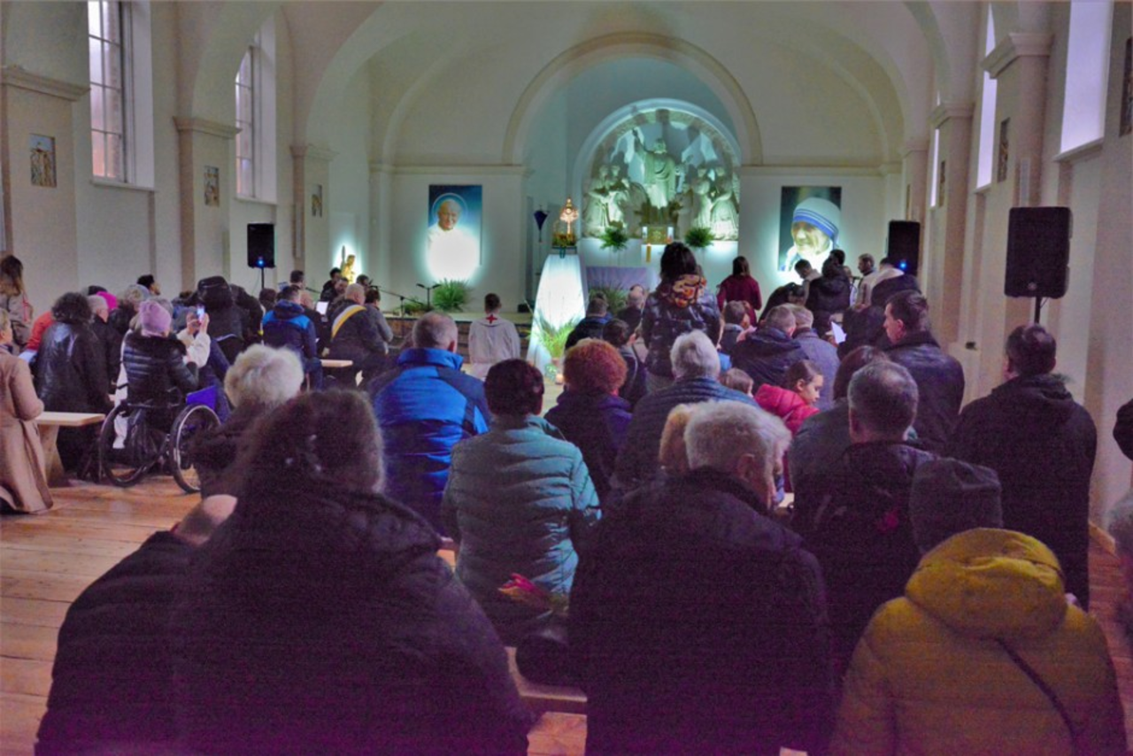 Zgromadzeni wierni w Domu św. Jana Pawła II, w 18. rocznicę pamiętali także o patronie. Jednym z utworów, którym dialogowali z Bogiem była Barka.