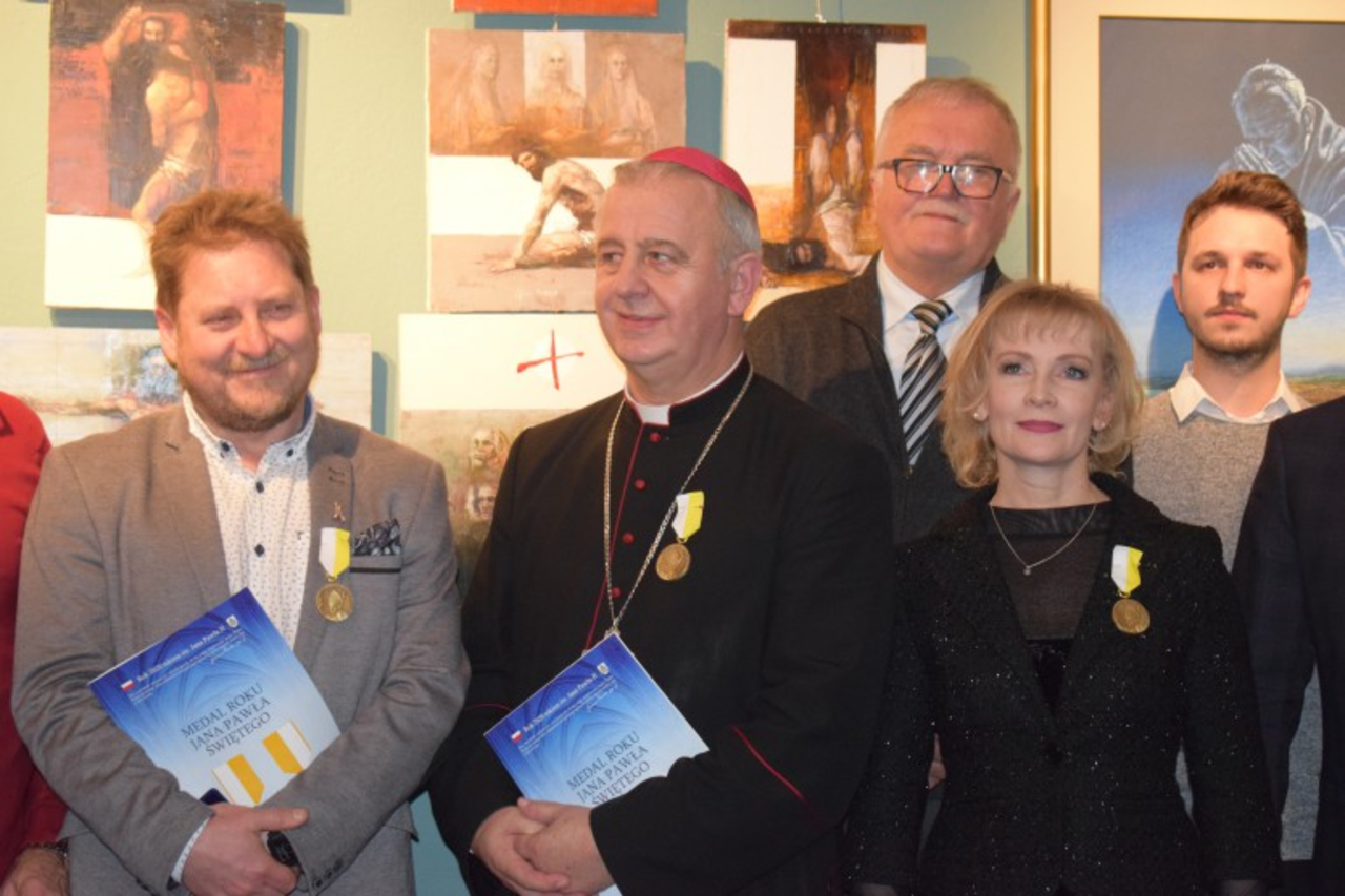 - Sztuka jest tak bogata, że zawsze trzeba szukać w niej czegoś więcej niż dotąd - stierdził biskup diecezji kieleckiej Jan Piotrowski. - Myślę, że to co prezentują artyści w związku z setną rocznicą urodzin papieża może dać nam wszystkim satysfakcję. Ta wystawa zachęca nas w pewien sposób do szukania w sztuce harmonii i piękna - dodał biskup, który tego dnia znalazł się w gronie osób odznaczonych medalem roku Jana Pawła II.