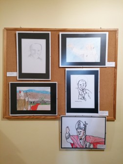 – 30 lat temu Jan Paweł II odwiedził Kielce i Masłów, a ta wystawa jest wspomnieniem tej wizyty. Mamy do obejrzenia film i przepiękne prace wykonane przez naszych uczestników. Niektóre są wypalane w drewnie, ale są też szkice i rysunki – mówi Magdalena Fogiel-Litwinek, wojewódzki komendant OHP.