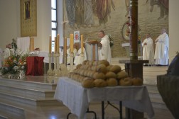 – Kiedyś nasz święty wyznał z pokorą: „Patrzę na Jezusa w Jego Eucharystii, czy Jego miłość obmyśliła coś jeszcze piękniejszego. Skoro jest Ciałem i my bądźmy chlebem. Dawajmy siebie samych”. Dlatego też razem z wami chcę przeżywać ten dzień i wspólnie stanąć przy stole eucharystycznym – opowiadał biskup Piotrowski.